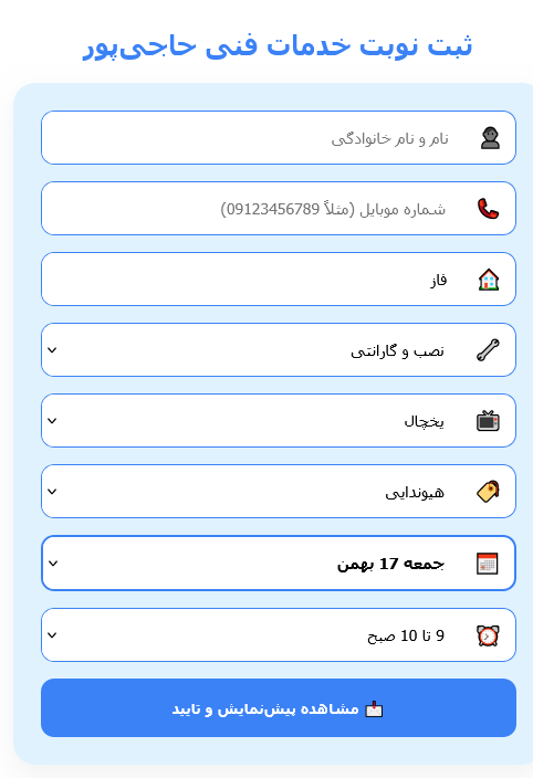 راهاندازی سیستم نوبتدهی هوشمند خدمات فنی حاجیپور